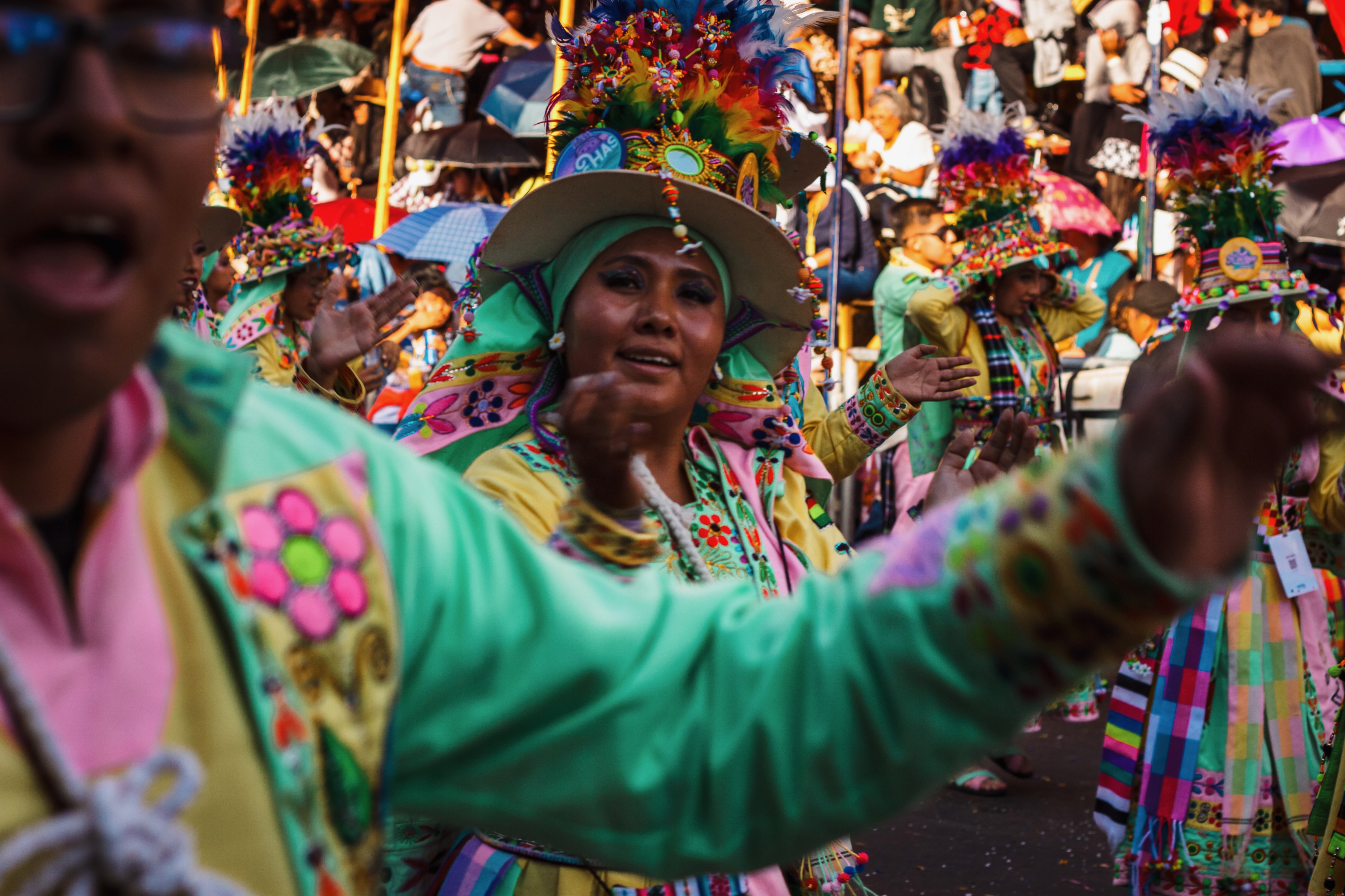 La festa consiste in un lungo corteo, vetrina della cultura boliviana, con costumi abbaglianti, musica ritmica e danze piene di energia.